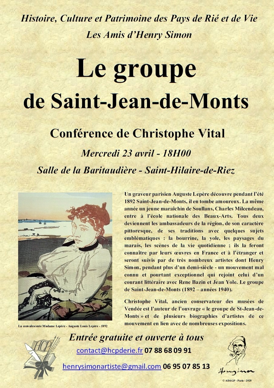 La conférence est organisée par l’association Histoire, Culture et Patrimoine du Pays de Rié et de Vie, ainsi que par « Les Amis d’Henry Simon ».