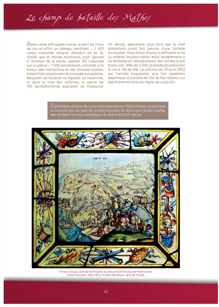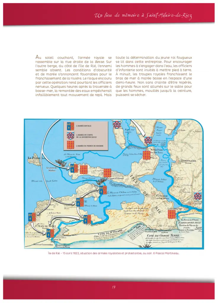 Dans cette ancienne île du Bas-Poitou, six années avant le Grand siège de La Rochelle, Louis XIII avait infligé, aux armées protestantes de l’Ouest, une lourde défaite. Deux siècles plus tard, pendant l’épisode des Cent-jours, le général vendéen Louis de La Rochejaquelein était tombé au combat, sur ces mêmes champs de bataille, sans être parvenu à rétablir Louis XVIII sur le trône.