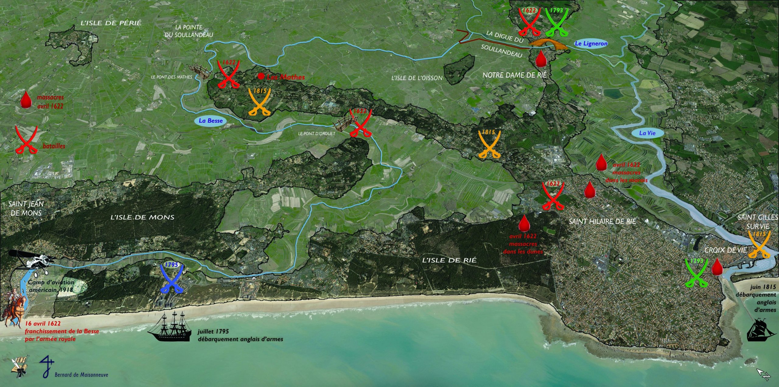 Sur ce promontoire de l’ancienne isle de Rié, les dunes et les marais invitent à la mémoire des guerres de religion et des guerres de Vendée. Catholiques et protestants au XVIIe siècle, royalistes et bonapartistes au XIXe, des hommes se sont battus, en ce lieu, pour leur religion ou leurs idéaux.