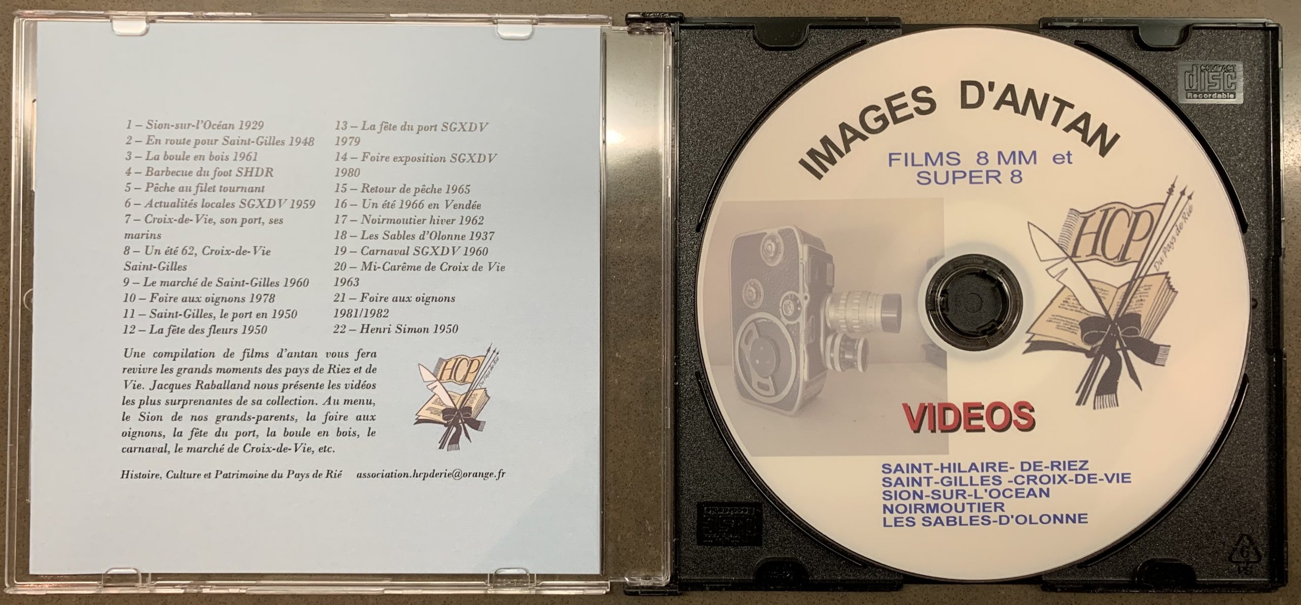 Vendu au prix de 12 €, vous revivrez chez vous les grands moments des pays de Riez et de Vie, tels que Sion-sur-l’Océan en 1929, Les Sables d’Olonne en 1937, la foire aux oignons en 1981, le carnaval et le marché de Croix-de-Vie en 1960, la fête du port, la boule en bois,… etc.