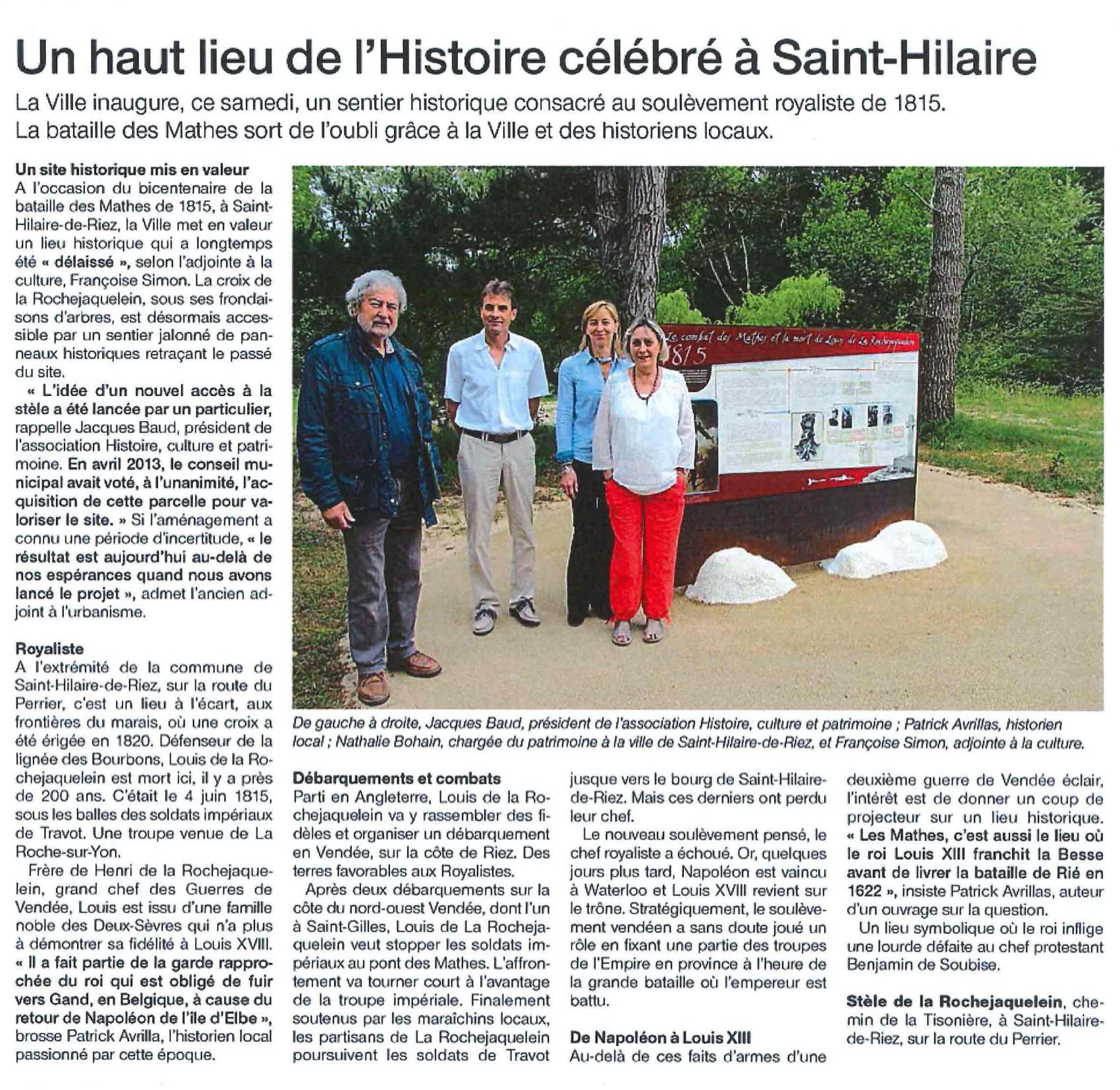Le 3 juillet 1828, la duchesse de Berry participait à une grande cérémonie royaliste à la ferme du Pré aux bœufs, à Saint-Hilaire-de-Riez. Ce jour-là, sous les drapeaux vendéens de 1793, 1500 maraîchins acquis à sa cause étaient rangés en bataille, armes à la main. La France était pourtant en paix !
